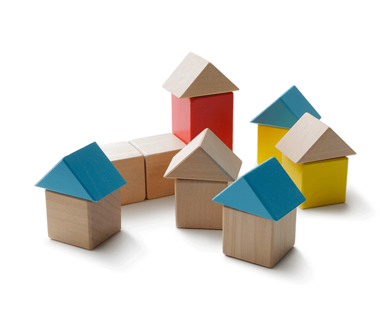 Pueblo de bloques de madera multicolor